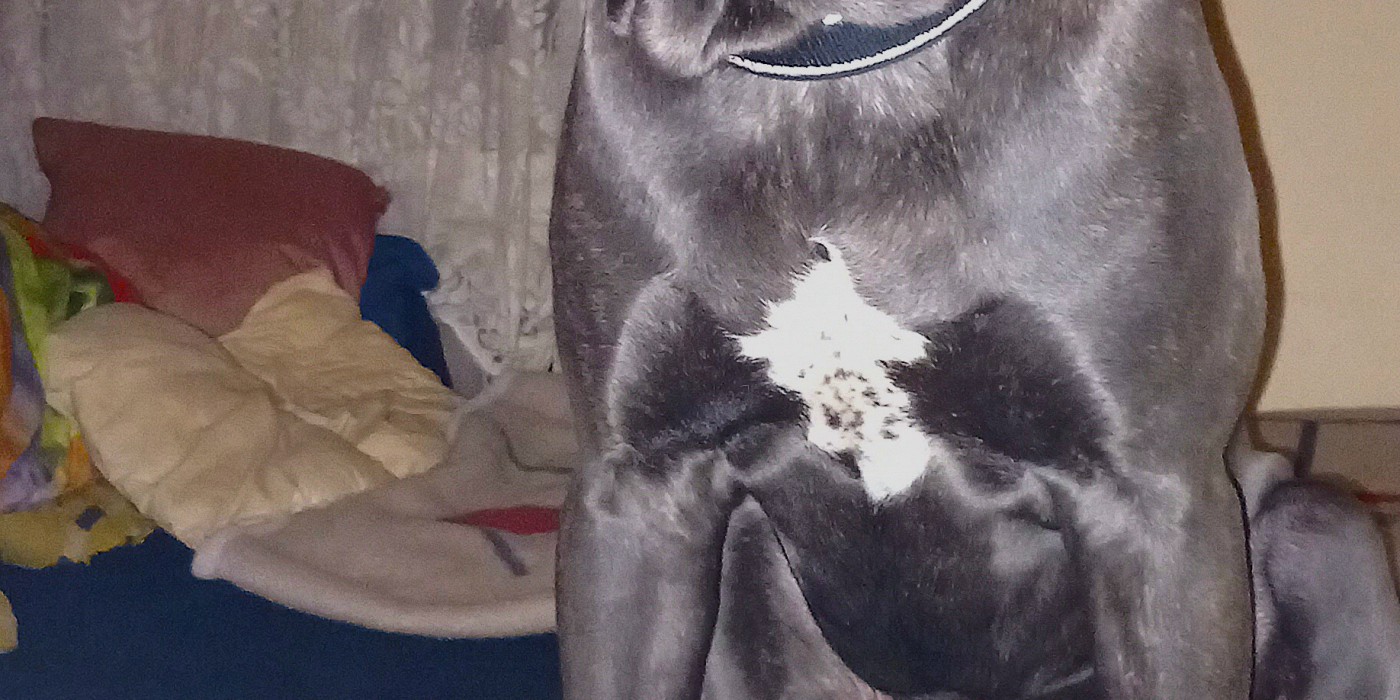 Hell bis mittelgrau und hellbraun gestromt. Brust weiß mit dunkelgrauen Punkten. Augenfarbe ist Braun